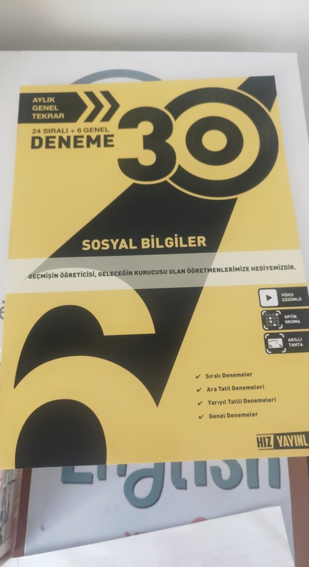 Sosyal Bilgiler alanında 24 sıralı ve 6 genel olmak üzere toplam 30 deneme içerir. Video çözümleri ve akıllı tanzim özellikleri bulunur.