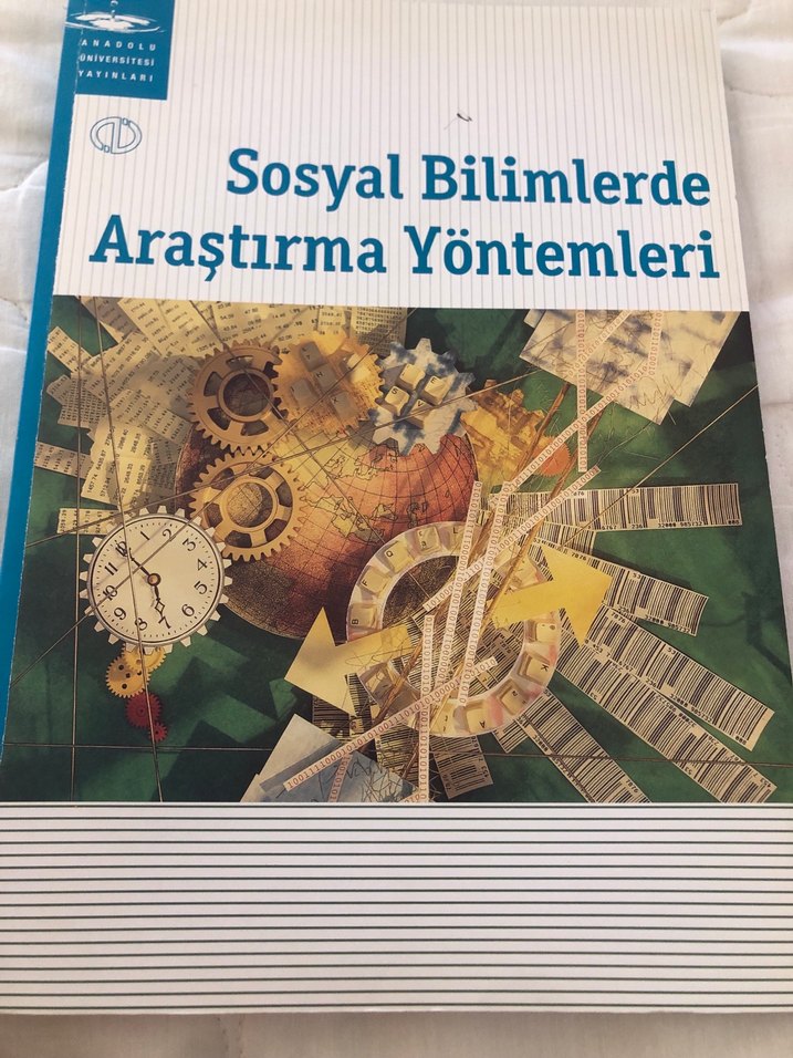 "Sosyal Bilimlerde Araştırma Yöntemleri" kitabı, kapakta dişliler, haritalar ve saat görselleri içerir.
