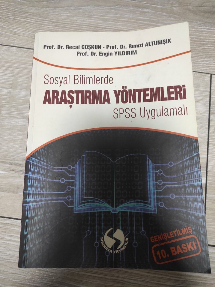 Sosyal bilimlerde araştırma yöntemlerini SPSS uygulamalarıyla anlatan, genişletilmiş 10. baskı kitap. Yazarlar Prof. Dr. Recai Coşkun, Remzi Altunışık, Engin Yıldırım.