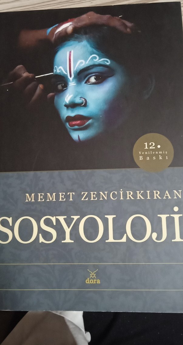 Memet Zencirkıran'ın 12. yenilenmiş baskı Sosyoloji kitabı, kültürel temaları yansıtan mavi yüz makyajlı dikkat çekici kapakla sunuluyor. üzerinde herhangi bir işaretleme yoktur. hiç kullanılmadı.