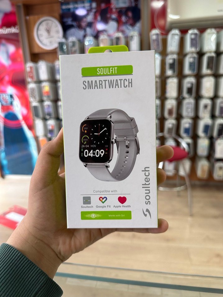 Soulfit gri akıllı saat, şık tasarımı ve Soultech, Google Fit, Apple Health uyumluluğu ile zaman ve sağlık verilerini net şekilde gösterir. ⌚