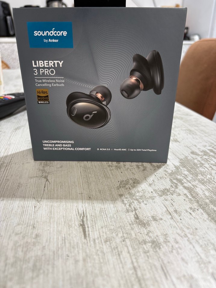Soundcore Liberty 3 Pro siyah kablosuz kulaklıklar, gerçek kablosuz gürültü engelleme özelliği ile net tiz ve bas sağlar, Hi-Res Audio desteği sunar.