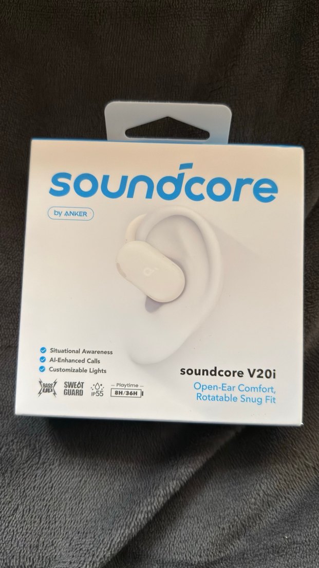 Soundcore V20i, açık kulak konforu, döndürülebilir sıkı uyum, özelleştirilebilir ışıklar ve yapay zeka destekli aramalar sunar. 36 saate kadar kullanım süresi vardır.