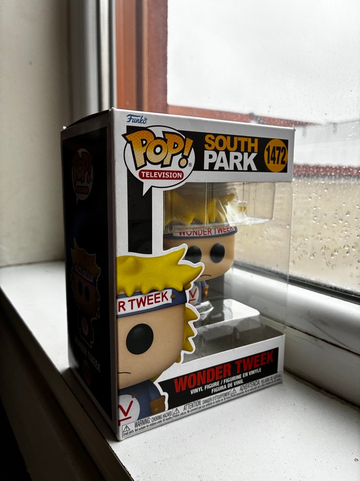 South Park serisinden Wonder Tweek figürü, 1472 numaralı Funko Pop! kutusunda, canlı sarı detaylara sahip.