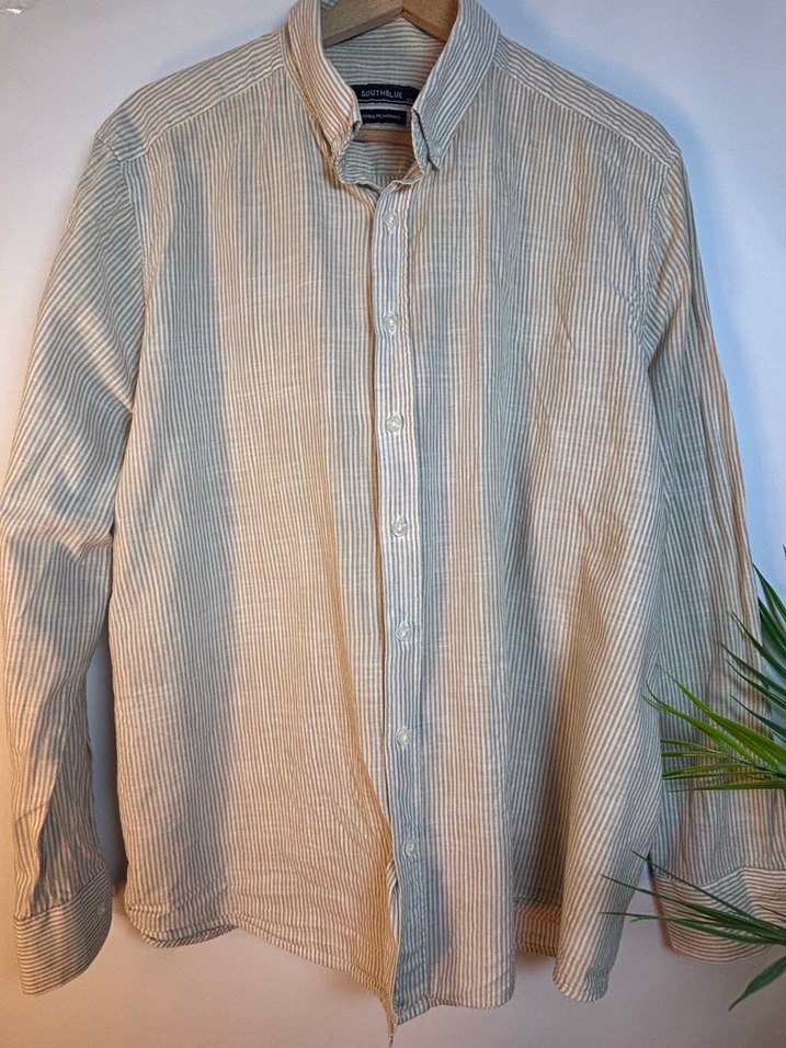 •Southblue, LCW'nin standart ürünlerine göre biraz daha "premium" ve "smart casual" (yarı resmi-günlük şıklık), LCW’nin en kaliteli serisi olarak kabul edilir. Kumaş dokusu genellikle standart ürünlerden daha kalitelidir ve daha uzun ömürlü olduğu söylenir. • "Regular/Normal" yazdığı için klasik, vücuda yapışmayan rahat bir kesime sahiptir. • Beden: 2XL (Büyük beden), bu da ürünün kalıbının oldukça geniş olduğunu gösterir. • Tasarım: Bej/Krem rengi çizgili deseniyle hem yazlık hem de baharlık kombinler için oldukça kullanışlı, modası geçmeyen bir parça. •%100 pamuk
