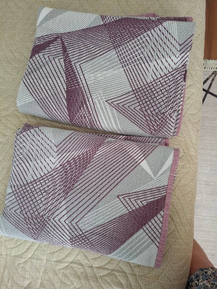 Mor ve gri tonlarda soyut desenli, yumuşak kumaşlı ve dayanıklı kenar detaylı çağdaş pike iki adet fiyatı