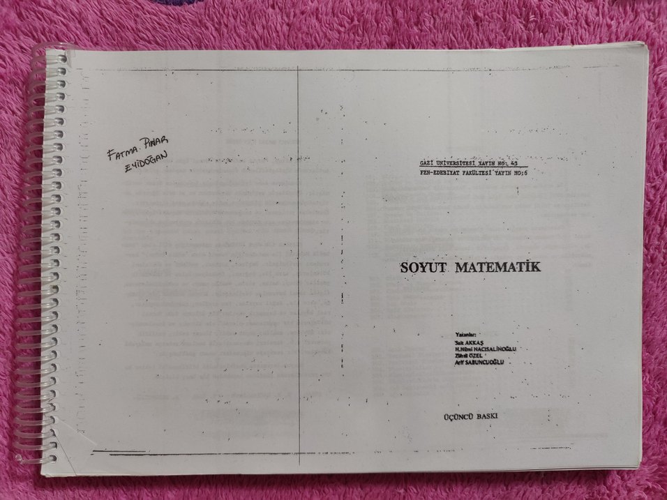 Soyut matematik konularını içeren, sait Akkaş ve diğerleri tarafından yazılmış üçüncü baskı kitap. gazi üniversitesi fen edebiyat fakültesi yayınlarından ders notu. birkaç sayfasında kalem izi var