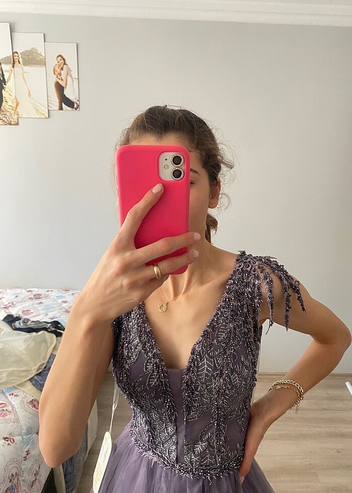 Hiç giyilmedi etiket üzerinde üst kısmı taşlı tül elbise