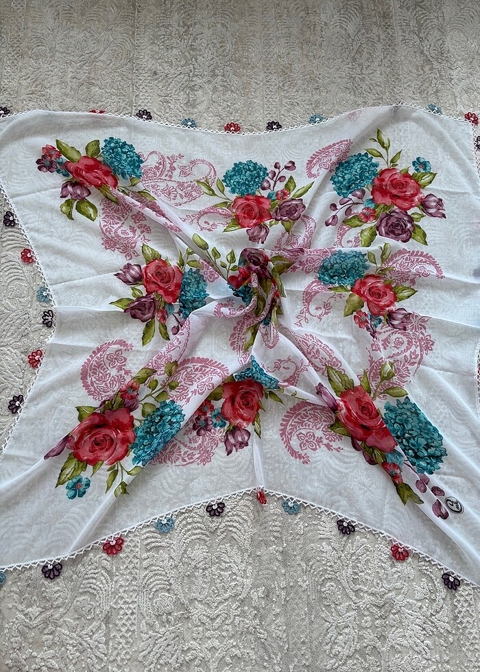 cenk markasına ait mis gibi kokan oyalı tülbent, gelinlerin çeyizine veya aile büyüklerin bohçasına konulabilir.