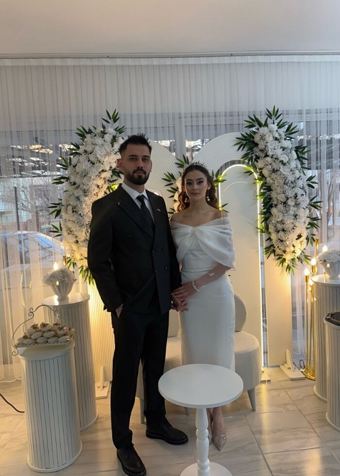 Bir kere giydim özel dikim m beden beyaz şık bir duruşu var