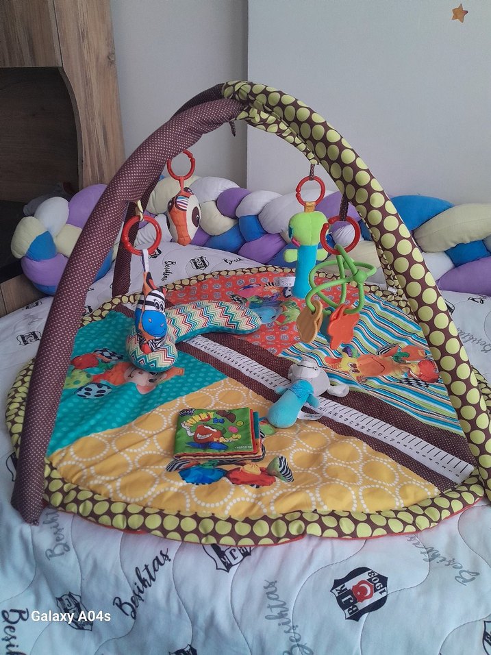 kizima almıştık doğru düzgün kullanamadık kalça cikigi oldu bandaj takıldı o yüzden şimdi de yürüyor oynamak nasip olmadı oyuncaklari fotograftakilerin tümü gönderilecek bez kitap var bide onuda hediye veriyorum ilk fotoda görünüyor bitek top eksik