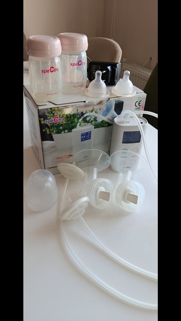SpeCtra beyaz renkli elektrikli göğüs pompası seti, biberonlar, emzikler ve hortum içerir. Dijital kontrol ünitesi ile kolay kullanım sağlar. Hiçbir deformasyonu bulunmamaktadır. Kutusu bile yepyeni durmaktadır.