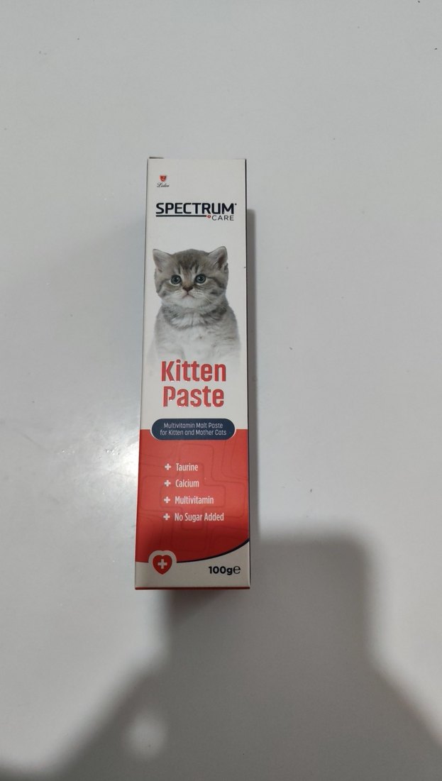 Spectrum Yavru Kedi Macunu, taurine ve kalsiyum içeren, şeker ilavesiz çoklu vitamin takviyesidir. 100g ağırlığındadır. Skt 07.26