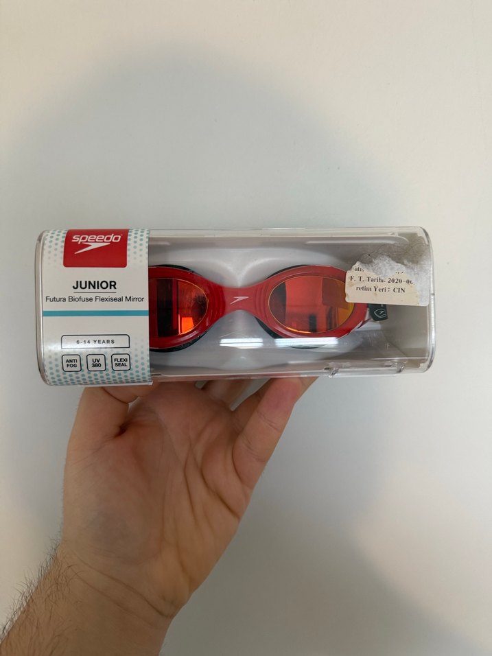 Speedo Junior yüzücü gözlüğü, kırmızı parlak ve baskılı tasarıma sahip, uyumlu ve sade stil sunar. Plajda kullanım için idealdir. 6-14 yaş arası için uygundur. Biofuse olduğu için çok daha konforlu ve ergonomiktir. Fotoğrafta görüldüğü gibi kutusundadır hiç açılmamış ve kullanılmamıştır.