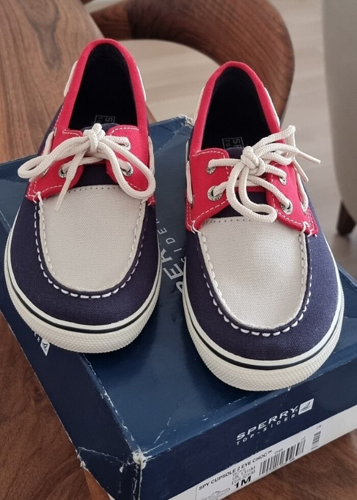 Hiç kullanılmamış olup, 32,5 Numaradır. Tekne ve Denizcilik tutkunları için üretilen Sperry marka ayakkabılarda özel kaydırmaz taban kullanılmaktadır. Bu özel taban sayesinde ıslak zeminlerde dahi kaydırmazlık özelliği devam eder. Kanvas kumaş yapısı sebebiyle hem çok rahat hem de şık bir görüntüsü var.