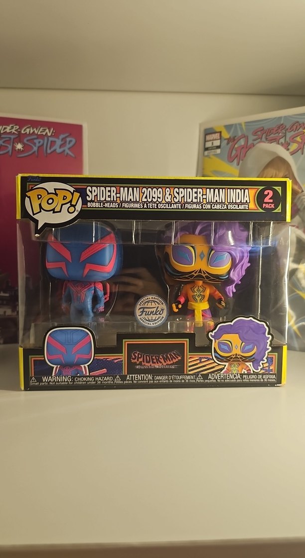 Bu Funko Pop setinde Spider-Man 2099 ve Spider-Man India'nın koyu mor tonlarında detaylı tasarımlı iki figürü bulunur. Bobble-head özelliklidir. ️