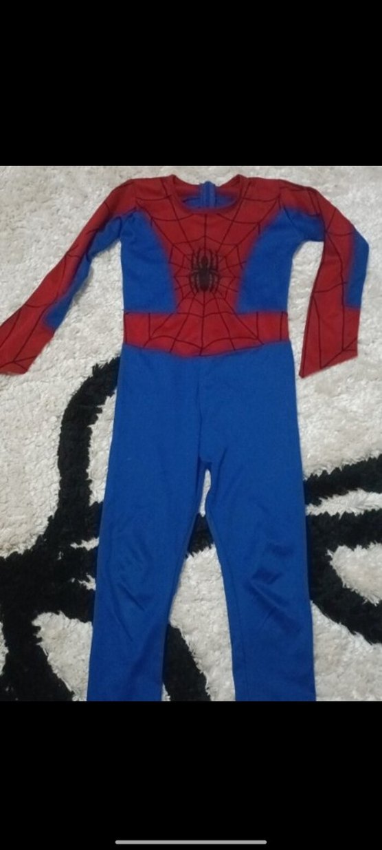 Uzun kollu, fermuarlı ve boğazlı bu çocuk kostümü, cesur mavi ve kırmızı renklerde örümcek ağı desenli olarak tasarlanmıştır. ️