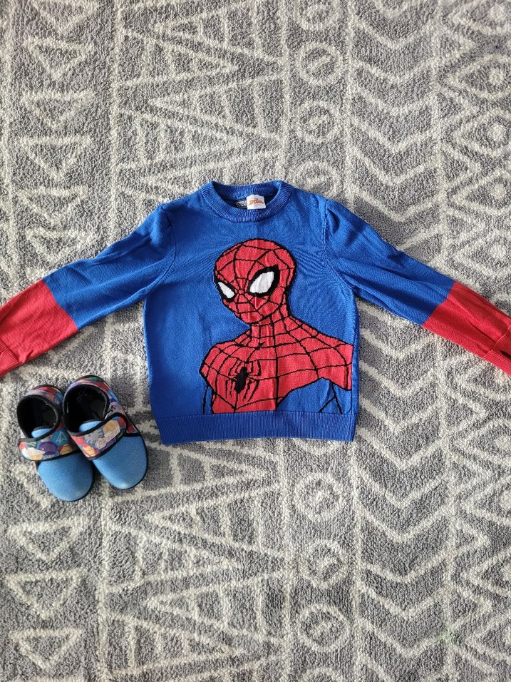 süper kahraman spider-man Marvel Batman kazak ve panduf ev ayakkabısı kreş okul ayakkabısı kazak 3 4 5 yaşa Uygundur ayakkabı 27 28 numaraya Uyar ikiside fotoğraflarda gözüktüğü gibidir