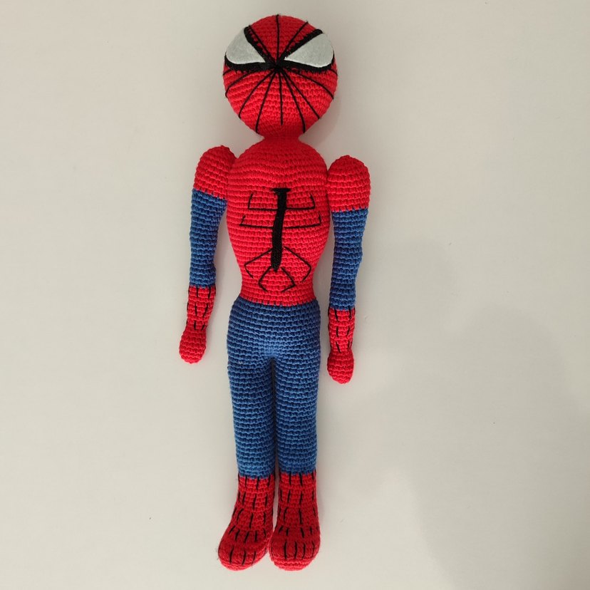 Spiderman Canlı kırmızı, mavi ve siyah ipliklerle el örmesi Örümcek Adam aksiyon figürü ve kalemlik düşük ısıda makinada yıkanabilir
