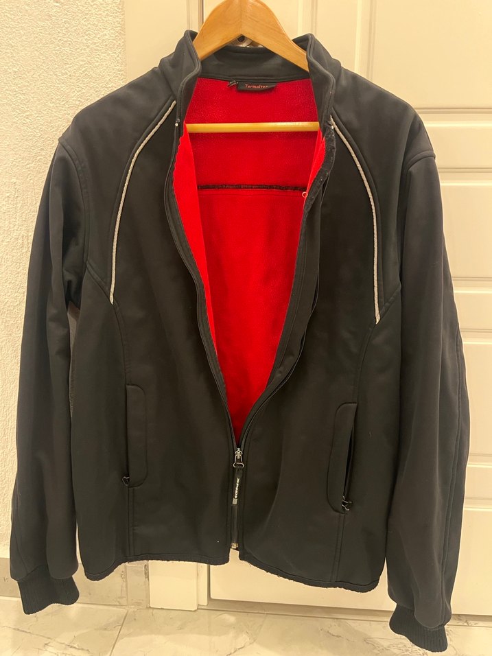 Fermuarlı, siyah, uzun kollu, içi termal kırmızı renkte spidi marka erkek motorsiklet ceketi iyi ve temiz durumdadır.