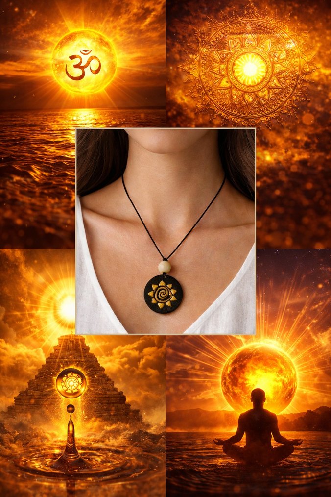 Güneşin yaşam veren enerjisi ve spiralin sonsuz döngüsü El yapımı, kil kolye. Işık daima seninle olsun