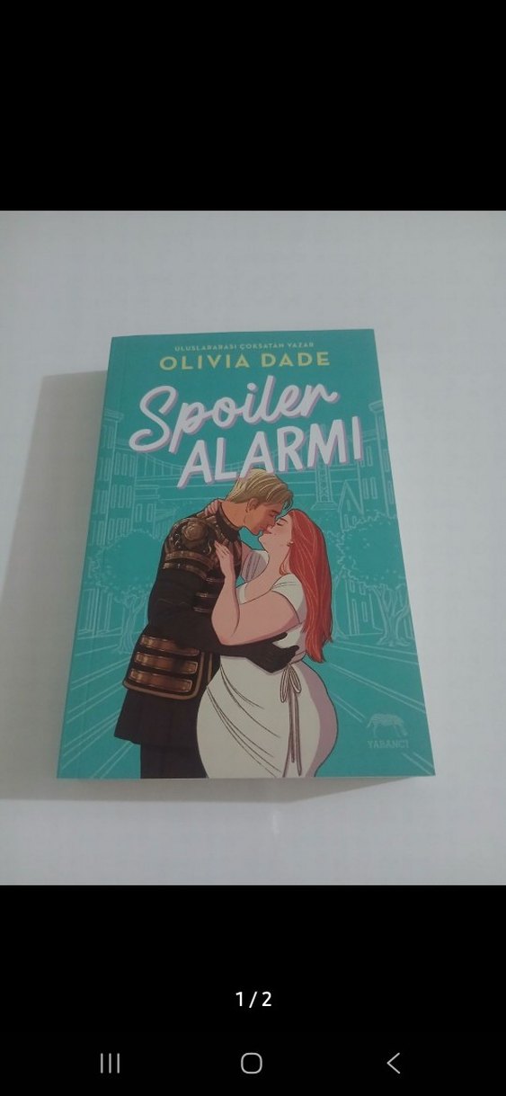 Olivia Dade'nin Spoiler Alarm adlı romanı, romantik bir hikayeyi etkileyici karakterlerle anlatıyor. Kapakta çiftin samimi anı yer alıyor.
