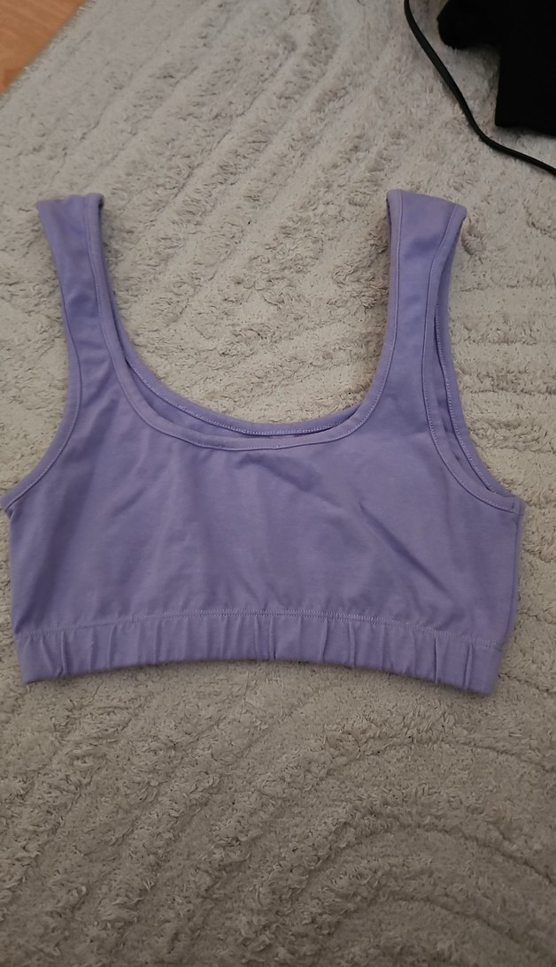 lila renkte, kolsuz ve boat neck yakalı, düz ve pastel görünümlü, sentetik yumuşak kumaştan yapılmış dar kesim bir atlet.