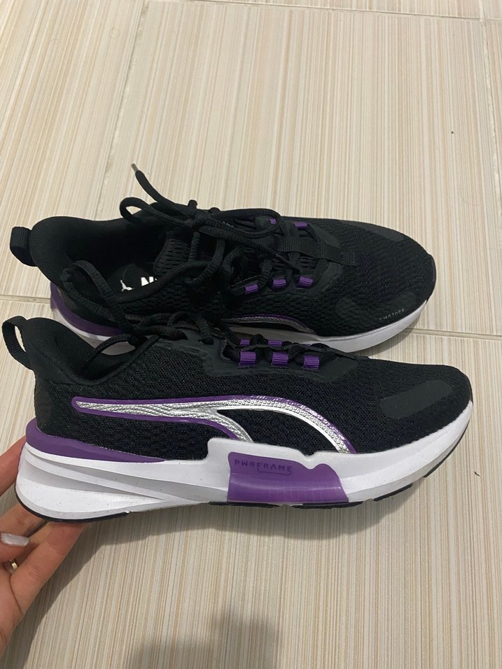 Mor detaylı siyah spor ayakkabılar, elastik özellikler ve stiletto tarzı taban ile trend sokak stili sunar. Günlük kullanıma uygundur. Sadece iki kez kullanıldı fazlalıktan dolayı satıyorum. Alana hayırlı olsun