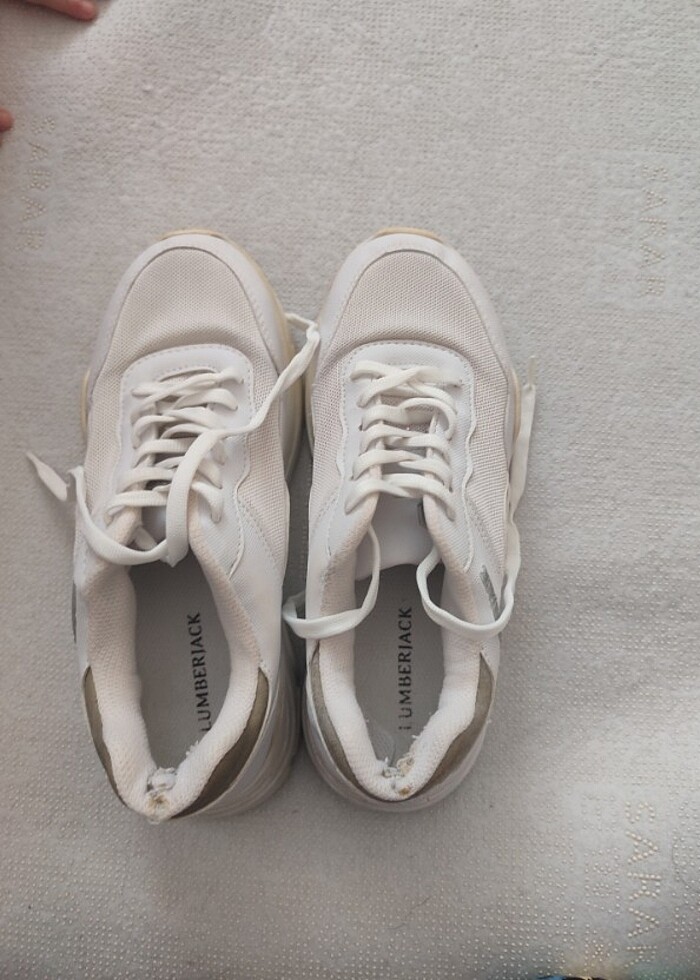 Lumberjack spor ayakkabı biraz içinde soyulma var onun dışında beyaz yerlerinde az sarılık başka bir sorunu yoktur sıfırı 2000 civarı fiyatı uygun tuttum