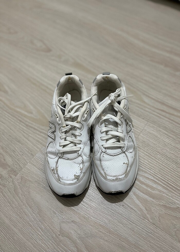 Defolu kısım fotoğrafta görünüyor. 38 numara giyinen biriyim ama 37.5 ayakkabı . Taraklı ayak değilim. Orijinal new balance