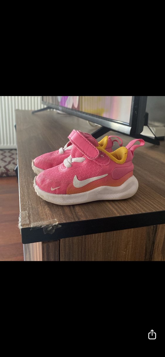 Pembe renkte, renkli tie-dye desenli kız çocuk spor ayakkabısıdır. Kolay kapanan cırt cırtlı bant ve dayanıklı kauçuk tabana sahiptir. Deformesi yok. 18,5 numara.