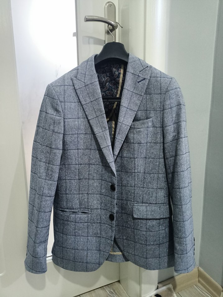 46 beden, 2,3 kez giyildi, hatası yok Düğmeli ön kısmı, gri kareli deseni ve uzun kollarıyla erkek takım ceketi. Normal uzunlukta ve regular fit kesim, ofis için klasik şıklık sunar.