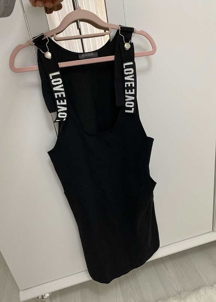 Spor tarzda elbise içine tişört tarzı bir şey giyilmeli tulum görünümlü elbise siyah renkli diz kapağın hafif üstü hiç giyilmedi hediye geldiği için değişim yapamıyorum satıyorum s/m beden uyumlu hiçbir kusuru yok yanları cepli