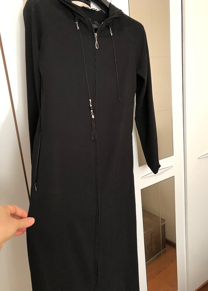 38 beden ferace spor kapşonlu dökümlü kumaş rengi canlı siyah cepli