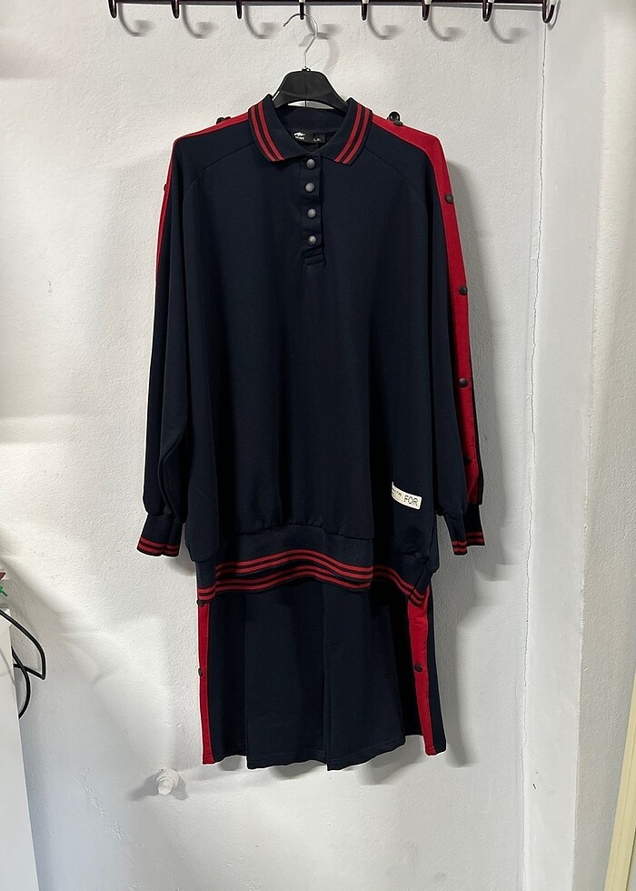 Yazlık penye kumaş Salaş model çok rahat Kollarda kırmızı detay düğmeler çok hoş bir hava katıyor Pantolon kenarlarında da aynı detay var Tunik boy 74 cm Bel 72 cm Kol 75 cm Pantolon boy 107 cm Basen 64 cm Bacak genişliği 34 cm Salaş çok rahat bir takım
