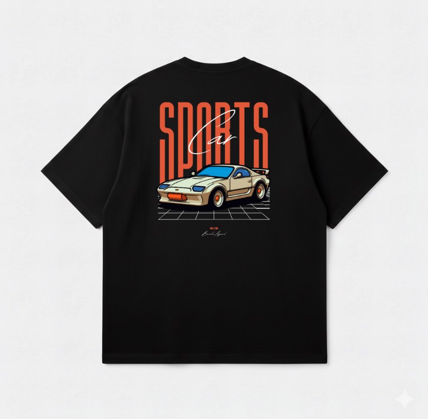 Bu siyah oversize tişört, baskılı vintage araba ve 'SPORTS' yazısı içerir. Yumuşak sentetik kumaştan, yuvarlak yaka ve kısa kolludur. ️HER BEDEN VE RENK MEVCUT toplu alımda indirim sağlanır