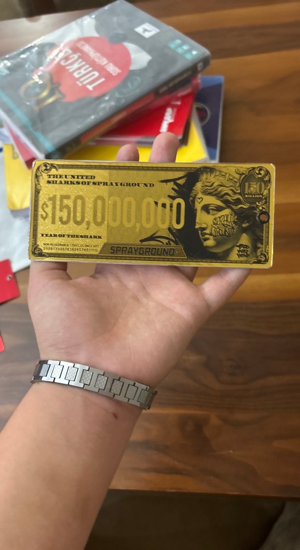 Sprayground markalı erkek cüzdan, parlak altın renkte ve $150.000.000 baskılı vintage tasarıma sahiptir. Gösterişli grafiklerle counterculture tarzında.