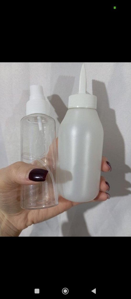 şeffaf sprey şişesi içeren set. Her iki şişe de beyaz kapaklıdır. biberiye suyu için kullanabilirsiniz