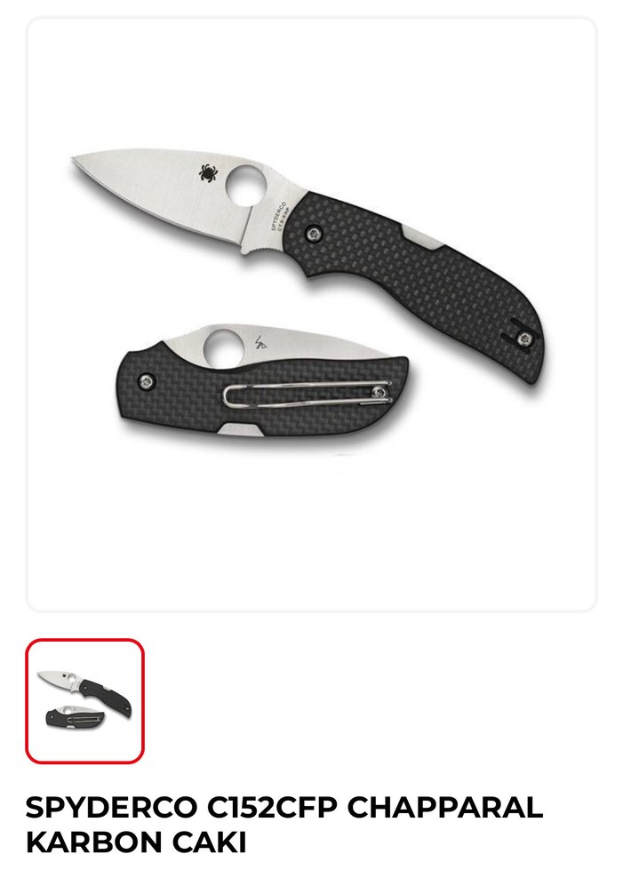 Spyderco Chapparal katlanır çakı, karbon fiber sap ve keskin paslanmaz çelik bıçağa sahiptir. Koyu gri renkte, taşıması kolay kompakt tasarım sunar.