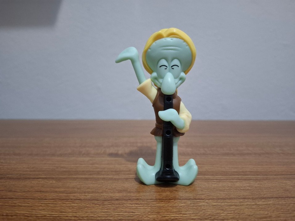Sıfır ürün Hiç Kullanılmamıştır. Squidward oyuncak. Figürün üst kısmındaki yerden üfleyerek figürün elindeki klarneti çalabilirsiniz. Çocukların severek oynayacağı bir ürün. Sponge Bob ( Sünger Bob) dünyasından.