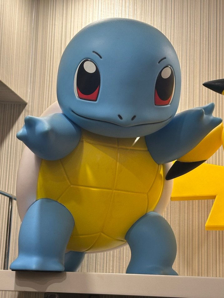 Sarı kabuklu, açık mavi renkli squirtle aksiyon figürü, canlı ve hareketli pozda, dikkat çekici gözlere sahip.
