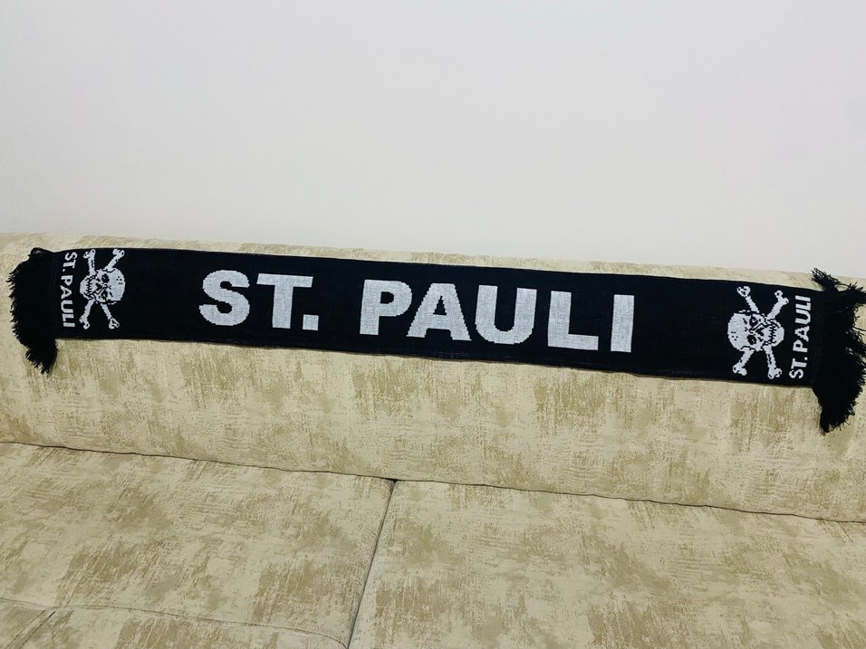 Bej parlak, üzerinde 'ST. PAULI' yazan rock punk tarzında, sade ve temel Paris alt kültürünü yansıtan erkek rozeti.