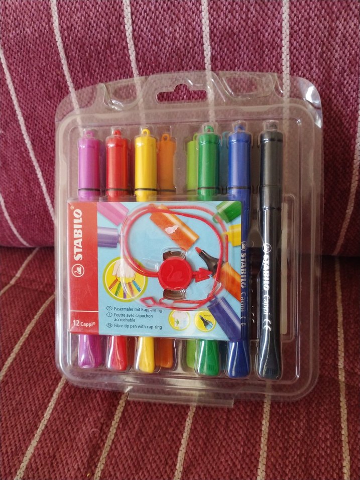 Stabilo Cappi Keçe Uçlu Kalem 12'li. Artık kalem kapaklarını kaybetmemeleri gereken 6 yaş ve üstündeki okul öğrencileri için ideal.Kalem kapakları özel bağlantılı ipine takılır, böylelikle kaybolmanın önüne geçilir. Ergonomik tutuş alanı çocukların elleri için özel olarak tasarlanmıştır. *12 canlı renk içeren set. *1mm kalınlığında keçe uç. Ürün açıklamaları fotoğraflara eklenmiştir. Markası Stabilodur. Stabilo'nun 12 canlı renkten oluşan fosforlu kalem seti, kapak halkaları ile kolay kullanım sağlar.