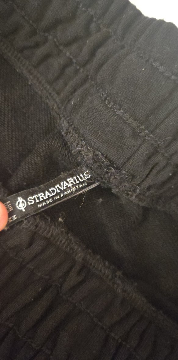 Siyah, bol kesim, yumuşak ve sıcak kumaştan kadın eşofman altı. Midi boyda, rahat sokak stili, dış mekan için uygundur.