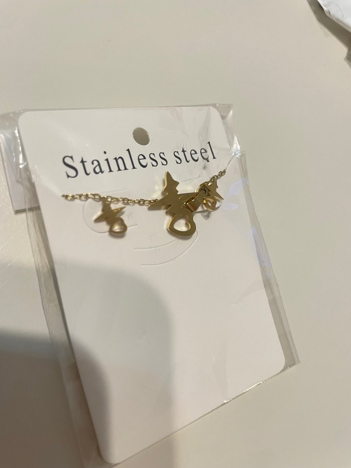 Paslanmaz çelikten yapılmış, ince zincirli ve baskılı detaylı kısa altın renkli kolye. Günlük kullanıma uygun. ✨
