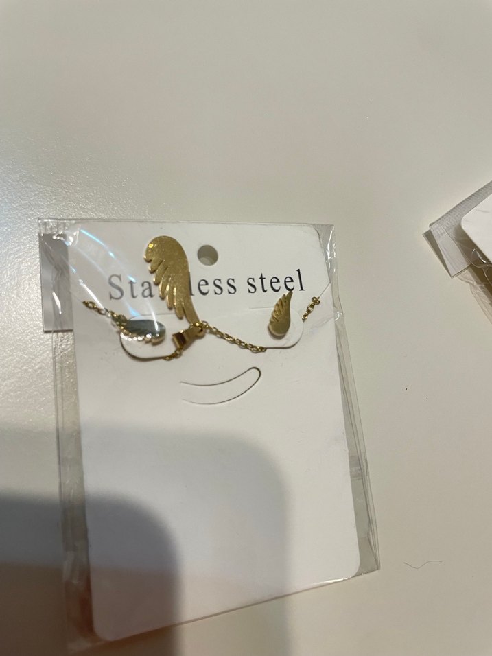 Stainless steel Altın Renk Zincir Detaylı Kadın Kolye Küpe seti