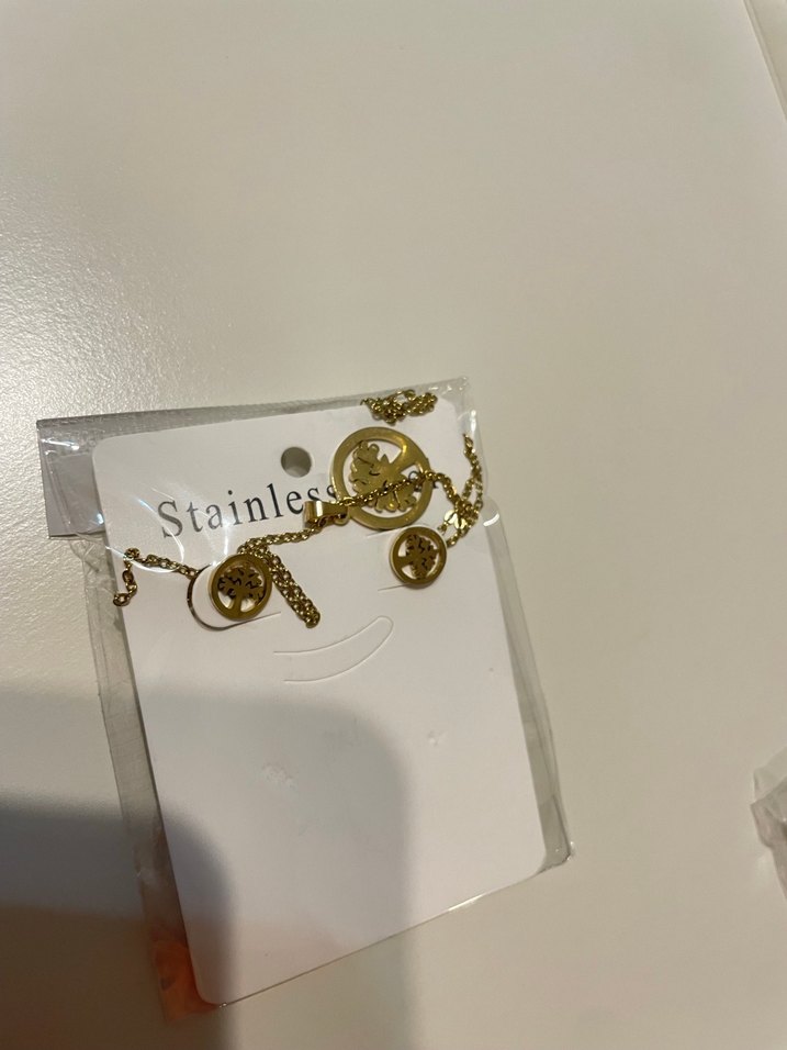 Parlak altın renkli kısa kolye, detaylı zincir ve baskılı bohem tarzı figürlere sahiptir. Paslanmaz malzemeden üretilmiştir. ✨