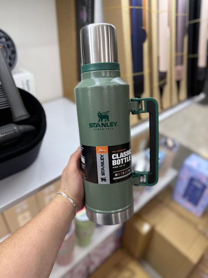 Stanley markalı klasik termos şişe, sağlam tutma sapı ve dayanıklı yapıya sahiptir. Haki renkte olup içecekleri uzun süre sıcak veya soğuk tutar. 48 Saat Sicak Soğuk Tutma Garantisi Vardır
