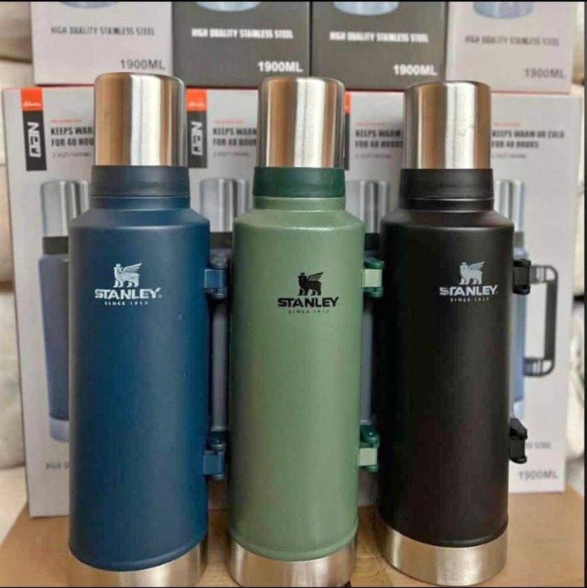 Stanley 1900ml paslanmaz çelik termos, haki renkte, içecekleri saatlerce sıcak tutar. Dayanıklı ve kullanışlı. ️