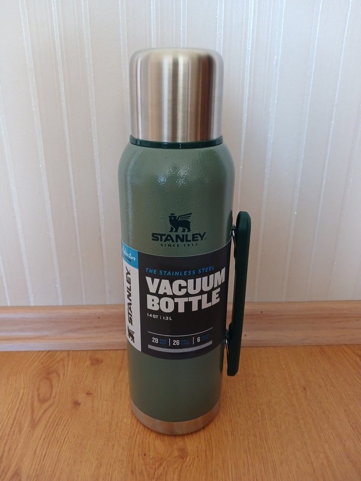 Stanley Adventure Vacuum Bottle 1.3 Lt Termos Efsane termos markası Stanley'nin 1.3 litrelik, yeşil kaplamalı çelik tasarımlı bu modeli, vakum izoleli, çelik konstrüksiyon, çift duvarlı yapısı ile sıcak içeceklerinizin 28 saate kadar, soğuk içeceklerinizin ise 26 saate kadar ısısını muhafaza edebilir. Buz takviyesi ile soğuk tutma süresi 150 saate kadar çıkabilir. çelik termos Yanınızda rahat taşıyabilmek için veya çantanıza rahat koymanız için yan kulpu destek olarak tasarlanmıştır. BPA İçermez Sızdırmaz Çelik Gövde Hacim : 1,3 lt Ağırlık : 875 Gr Boyutlar : 10,4 x 9,9 x 33,5 cm Yapı : Paslanmaz Çelik Gövde Sıcak : 28 Saat Soğuk : 26 Saat Buzlu : 150 Saat Classic termosla karıştırmayın lütfen.